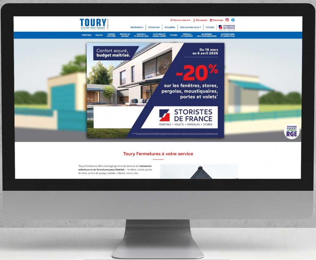 Toury fermetures Description Conception et réalisation d'un site internet responsive pour la société Toury Fermetures à Lucé en Eure et Loir 28. Voir le projet Toury fermetures